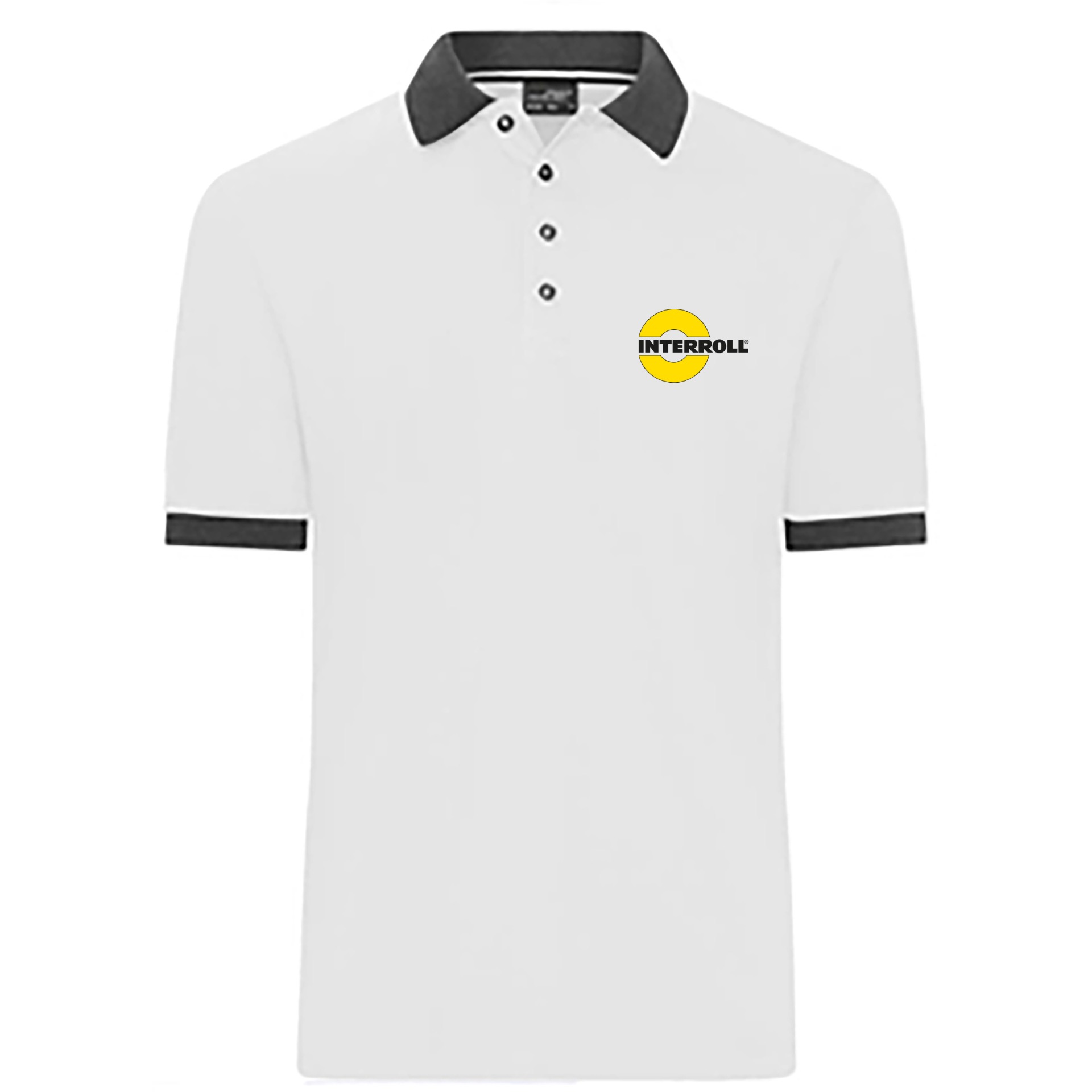 Women's polo shirt with screen-printed INTERROLL LOGO (2 colors). 100% cotton – 4 contrasting buttons – contrasting collar and sleeve trim.